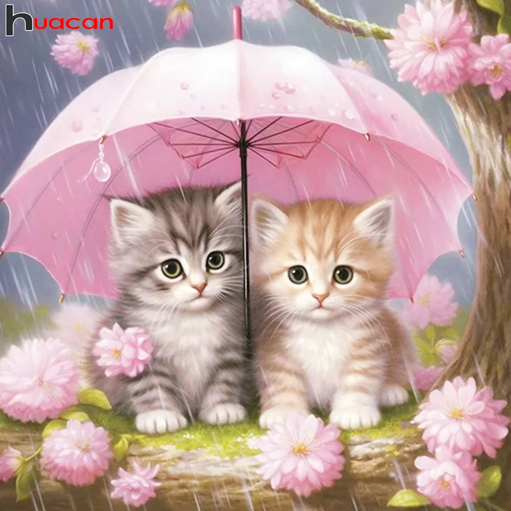 Huacan Diamond Mosaic Animal Cat Full Diamond Painting Flower Art Home Decor Gift Set Rhinestone Pictures  Read more