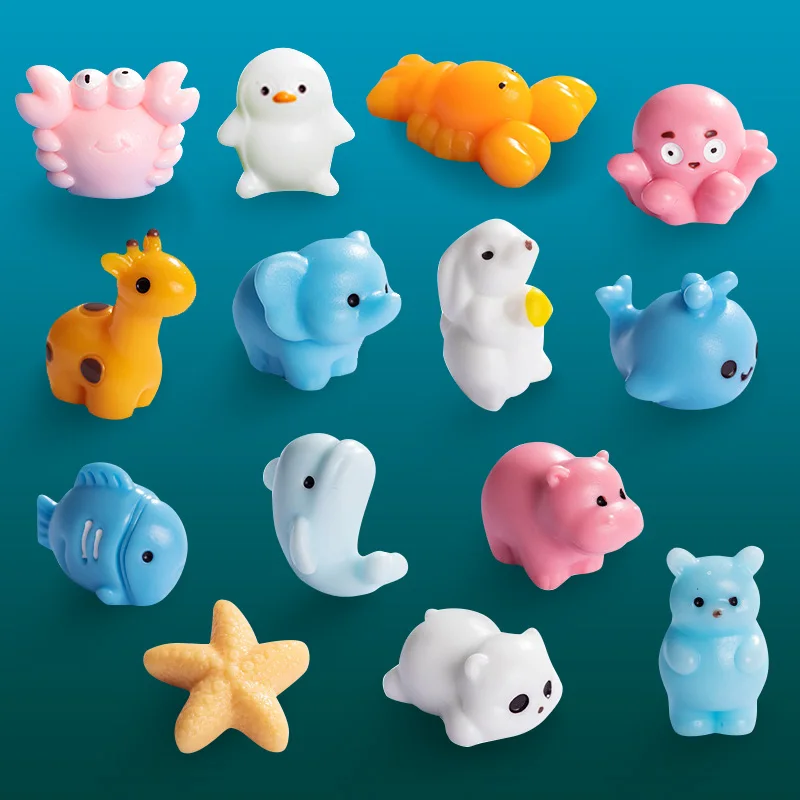 10Pcs Octopus Dolphin Fish Crab Lobster Penguin Rabbit Giraffe Bear Hippo Figurine Miniature Fairy Garden Decoration Accessories