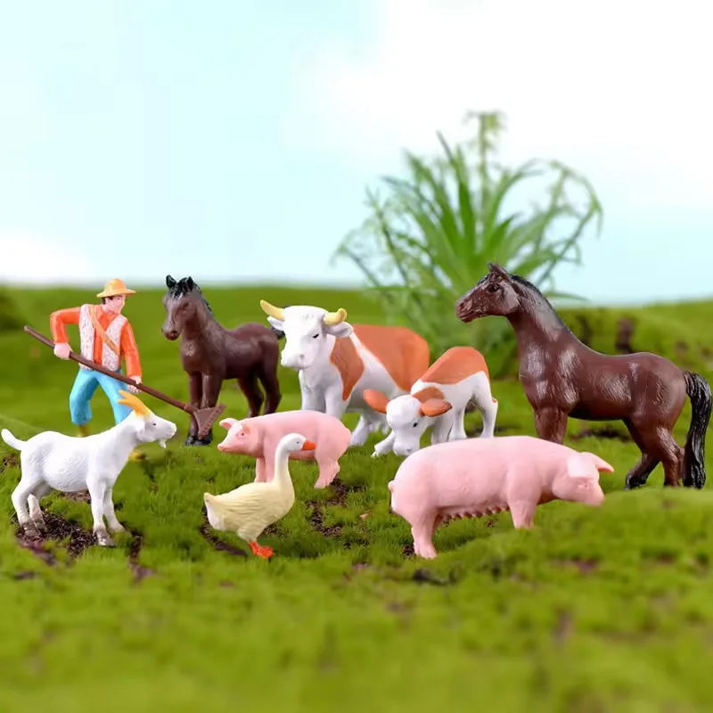 DIY Farmland Worker Pig Horse Cow Sheep Duck Animal Model Goat Figurine Home Decor Miniature Fairy Garden Decoration Accessories