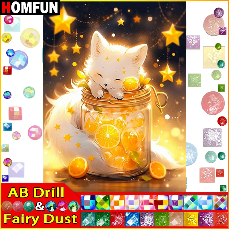HOMFUN Fairy Dust AB Diamond Painting "Animal Cat" 5D DIY Diamond Embroidery Full Square/round Rhinestone Of Picture