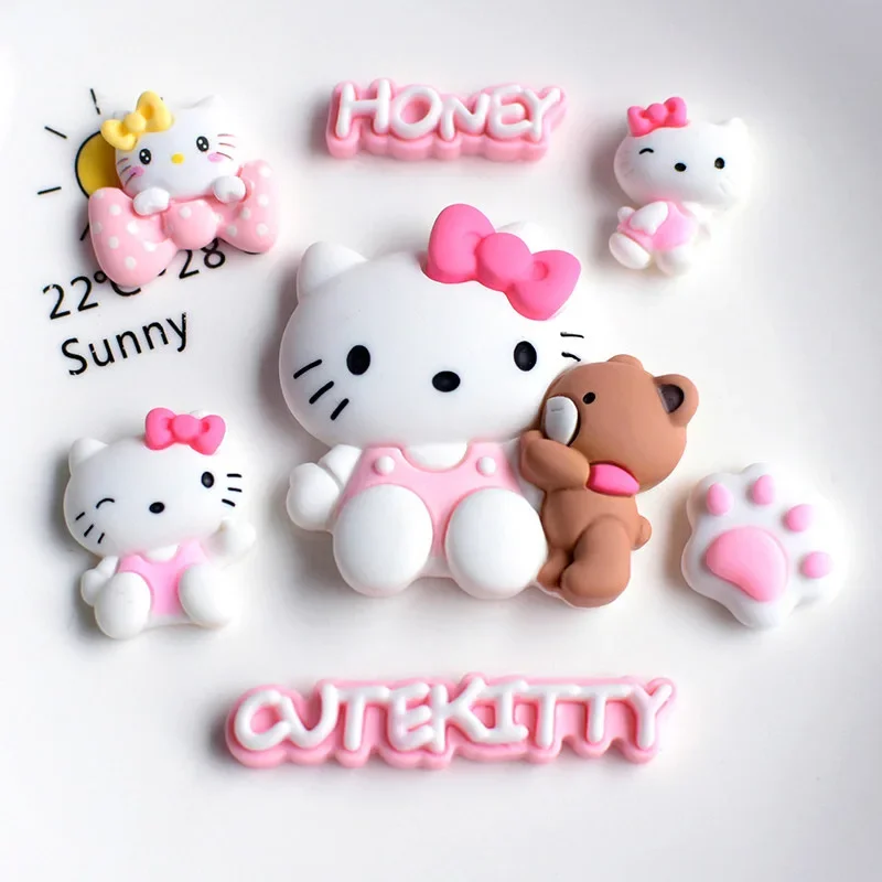 5pcs cute hello kitty cartoon resin flatback diy kawaii resin accessories crafts materials scrapbooking embellishment  Read more