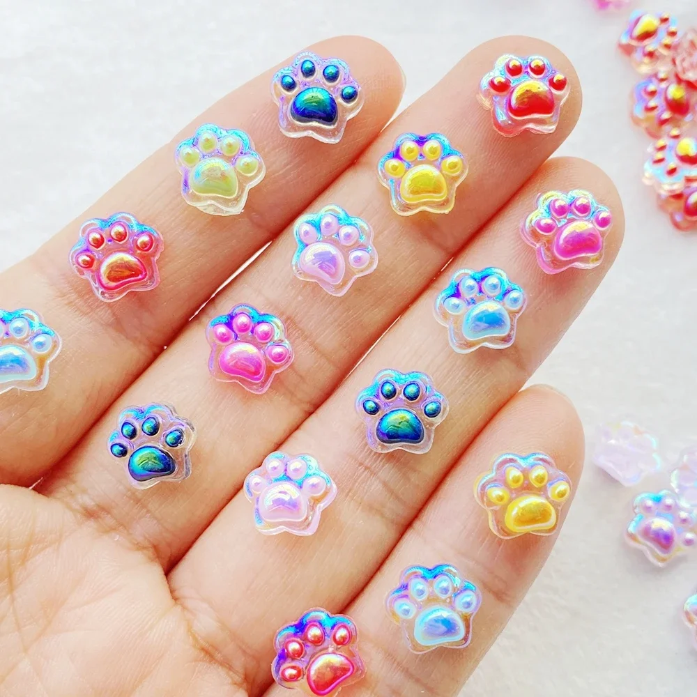 50pcs Resin Kawaii Mini Shining Cat Claws Flatback Rhinestones Figurines Nail Art DIY Scrapbook Accessories Crafts Supplies