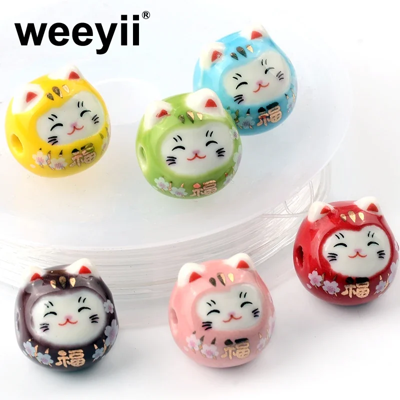 5Pcs 13x15mm Cross Hole Round Shape Blessing Cat Ceramic Beads Colorful Handmade Porcelain Beads for Jewelry Making Bracelet DIY  Read more