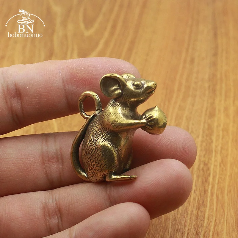 Vintage Brass Fatty Rat Sculpture Desk Decoration Ornament Copper Small Mouse Miniature Figurines Home Decor Funny Childs Gifts