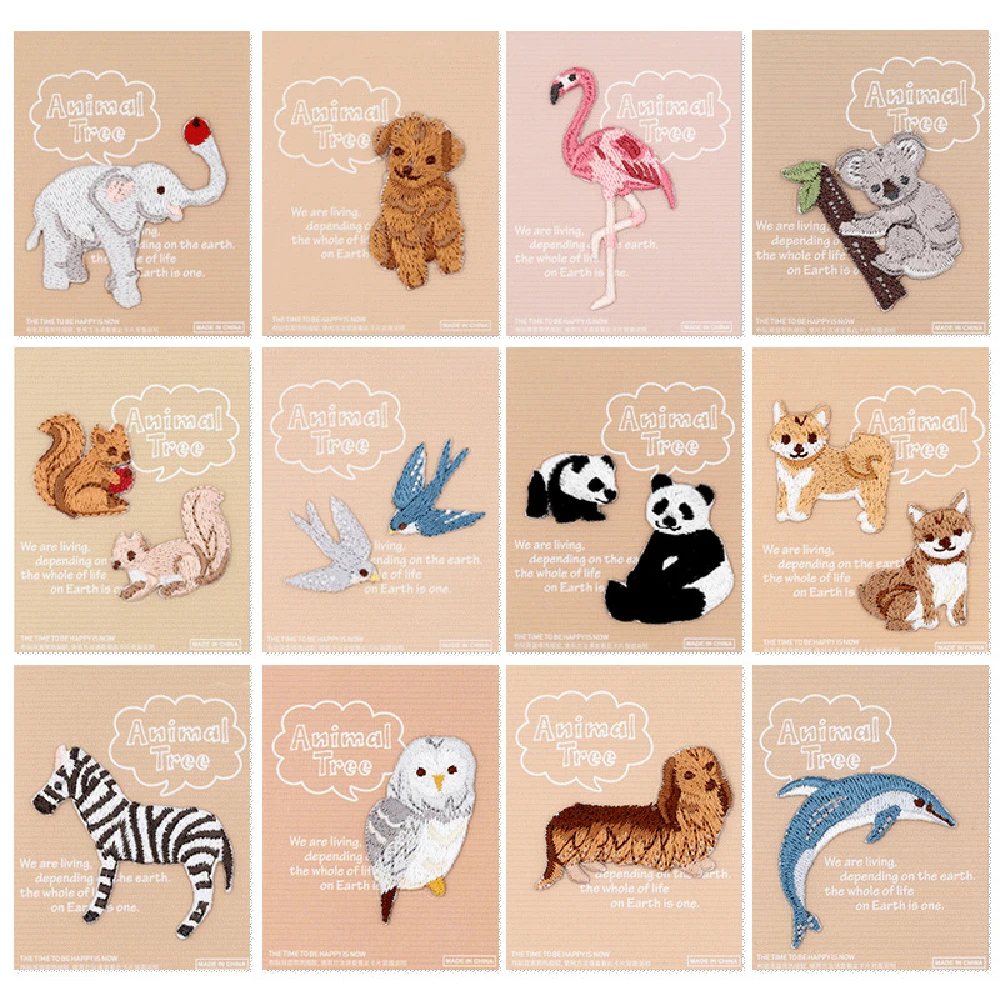 1 Piece 2-5 cm Iron on Patch Embroidery Zebra Kangaroo Raccoon Koala Owl Flamingo Giraffe Elephant for Clothing DIY Accessories