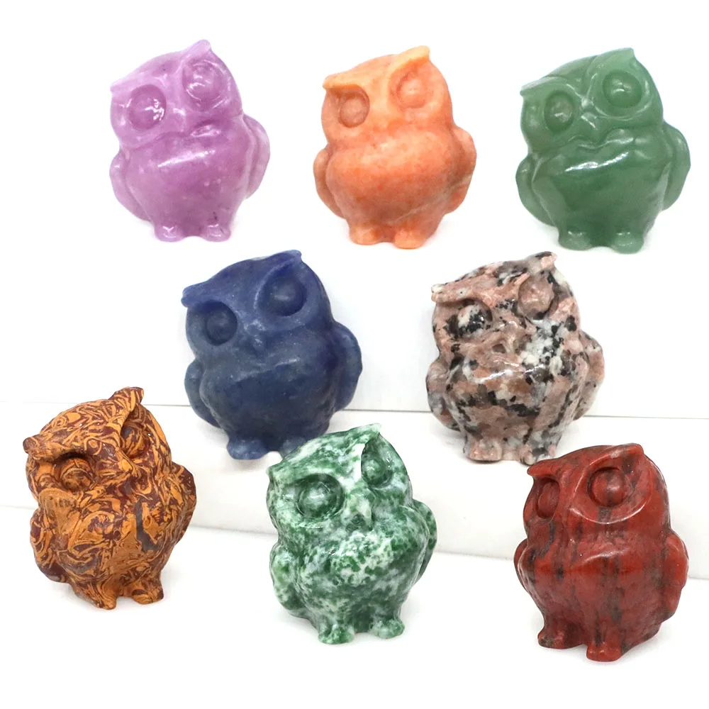 Owl Statue Natural Stone Carving Healing Crystal Quartz Animal Figurine Energy Mineral Gem Hand Made Crafts Home Decoration Gift