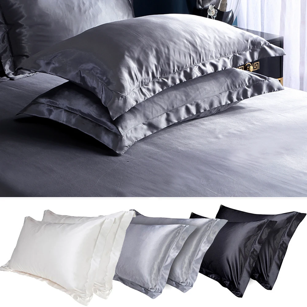 2Pcs Mulberry Silk PillowsCase Solid Color Soft Cushion Cover Decor Satin Luxury Pillow Cases Sleep Healthy Adult Pillow Cover