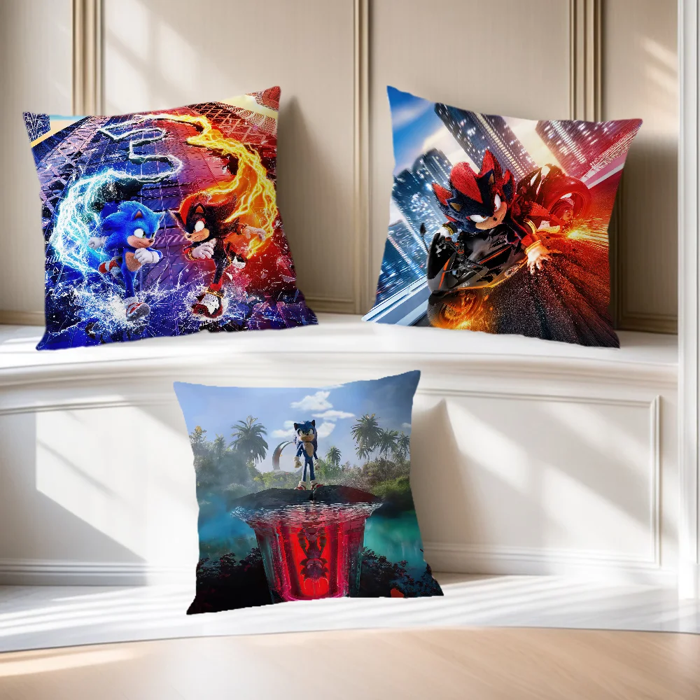 Comfortable Soft S-SONIC 3 Pillow Movie Case For Sofa Living Room Home Office Decor Protective Hedgehog Covers
