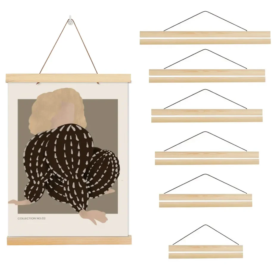 1PC Magnetic Wooden Picture Poster Hanger Frames Photos Wall Art Canvas Print Painting Teak Pine Wood Living Room Home Decor