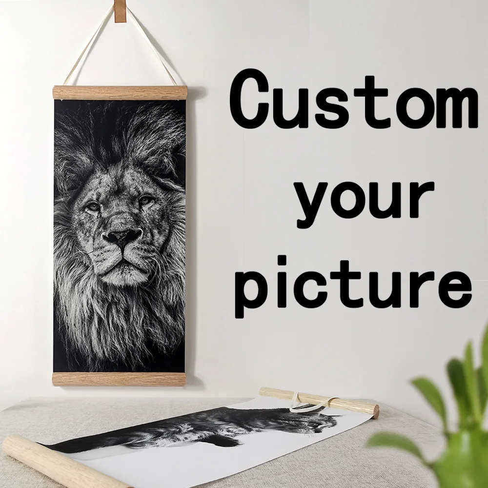 Natural Teak Pine Wood Magnetic Poster Hanger Scroll Painting Frame 30x40 40x50 40x60 Black White Wood Photo Frame Canvas Frame
