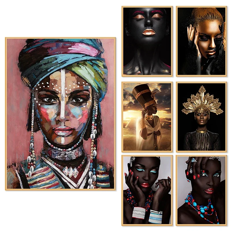 African Woman Canvas Painting Beautiful Black Women Wall Art Poster Modern Living Room Interior Aesthetic Picture for Home De