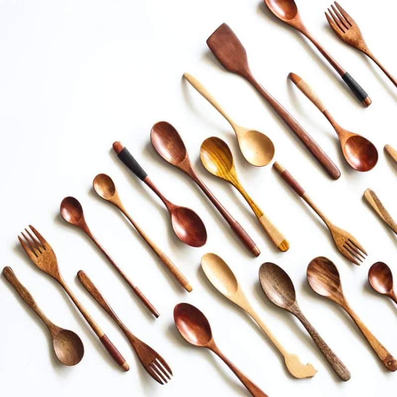 Kids Mini Wooden Spoon Fork Seasoning Coffee Dessert Honey Long Spoon Kitchen Wooden Accessories Restaurant Supplies