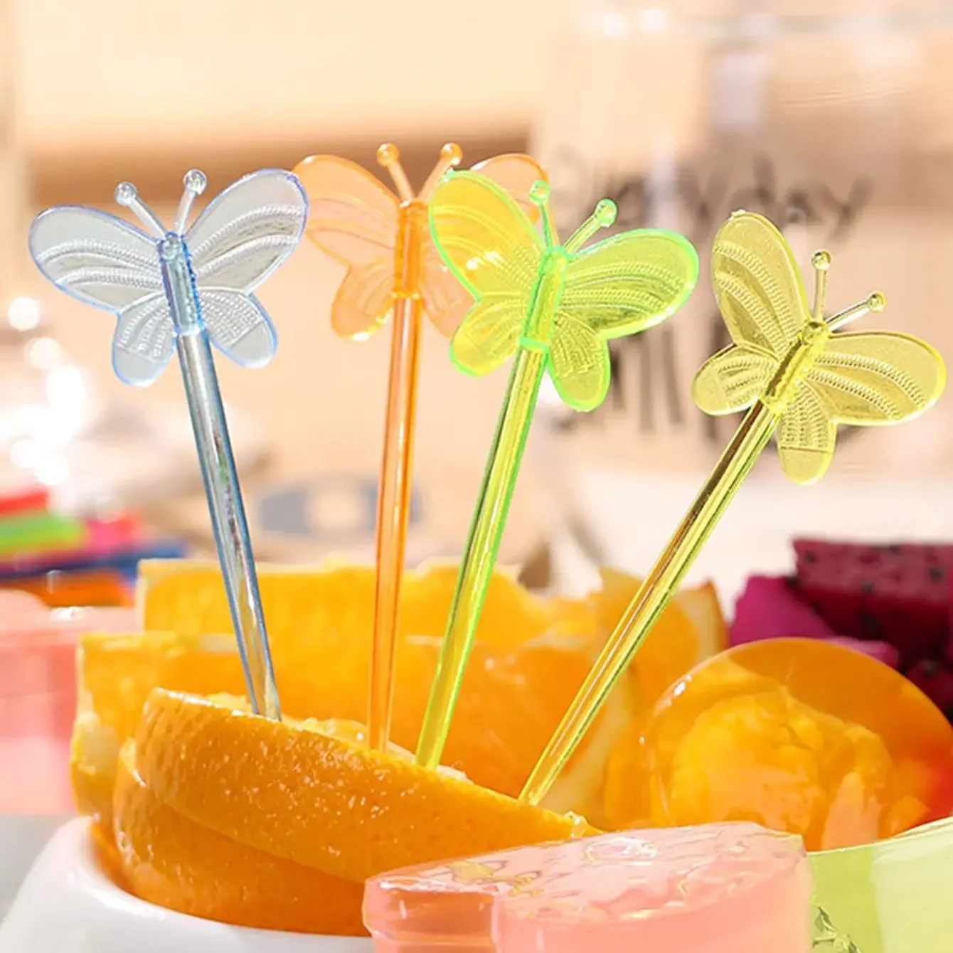 25pcs -Disposable plastic colored fruit fork, butterfly fruit pick, toothpick, fruit fork