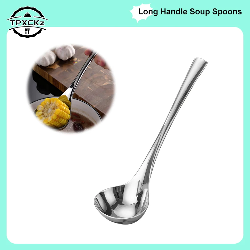 1pc Spoon Stainless Steel Thicken Long Handle Soup Spoons For Hot Pot Scoops Colander Home Kitchen Tableware Cooking Utensils