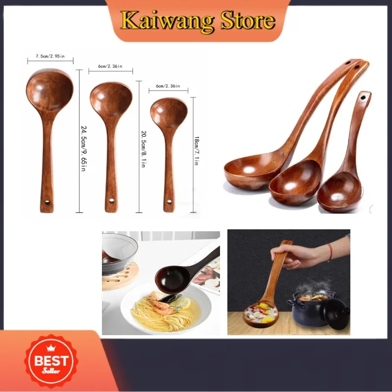 Premium Teak Wood Cooking Ladle Long Handle Soup Spoon Non-Scratch Kitchen Utensil Heat Resistant Wooden Tableware For Home