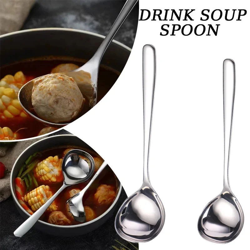 Soup Spoon Stainless Steel Creative Durable Thickening Spoon Home Kitchen Essential Tools Comfortable Long Handle Small Spoon