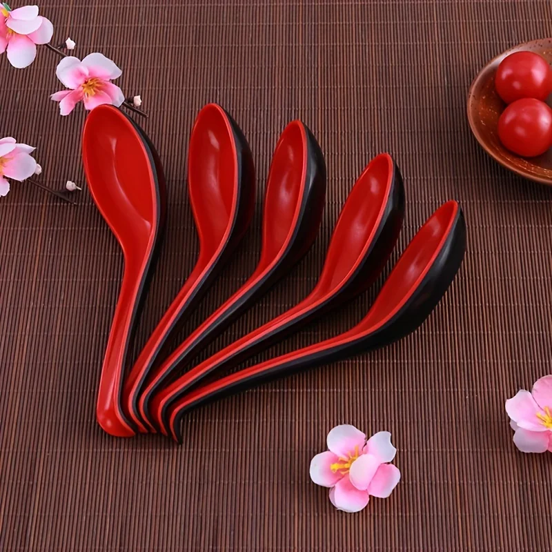 5pcs Soup Spoons Japanese Style Rice Spoons Melamine Spoon Sauces Soup Spoon Porridge Spoon Ramen Pho Wonton Dumpling