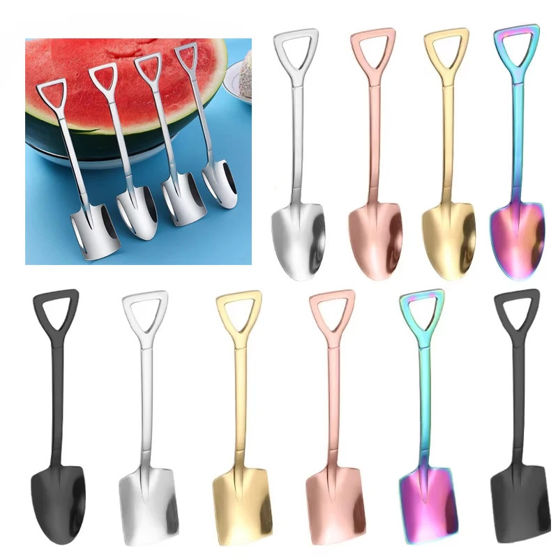 Vintage Shovel Design Stainless Steel Coffee Spoon Creative Ice Cream Cake Watermelon Dessert Multipurpose Kitchen Tool Unique