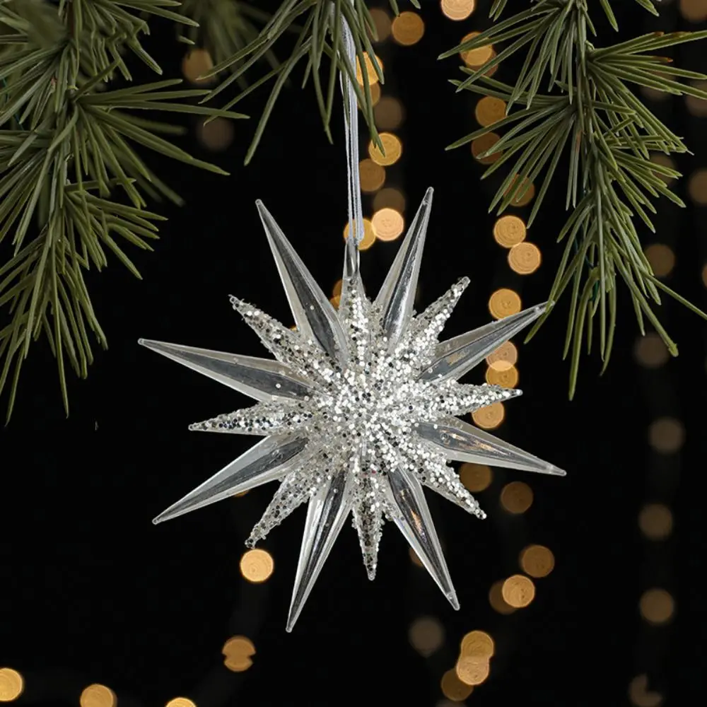 2pcs Acrylic Crystal Christmas Tree Pendant Clear Angel/Dancing Girl Xmas Tree Hanging Ornaments DIY with Sequins
