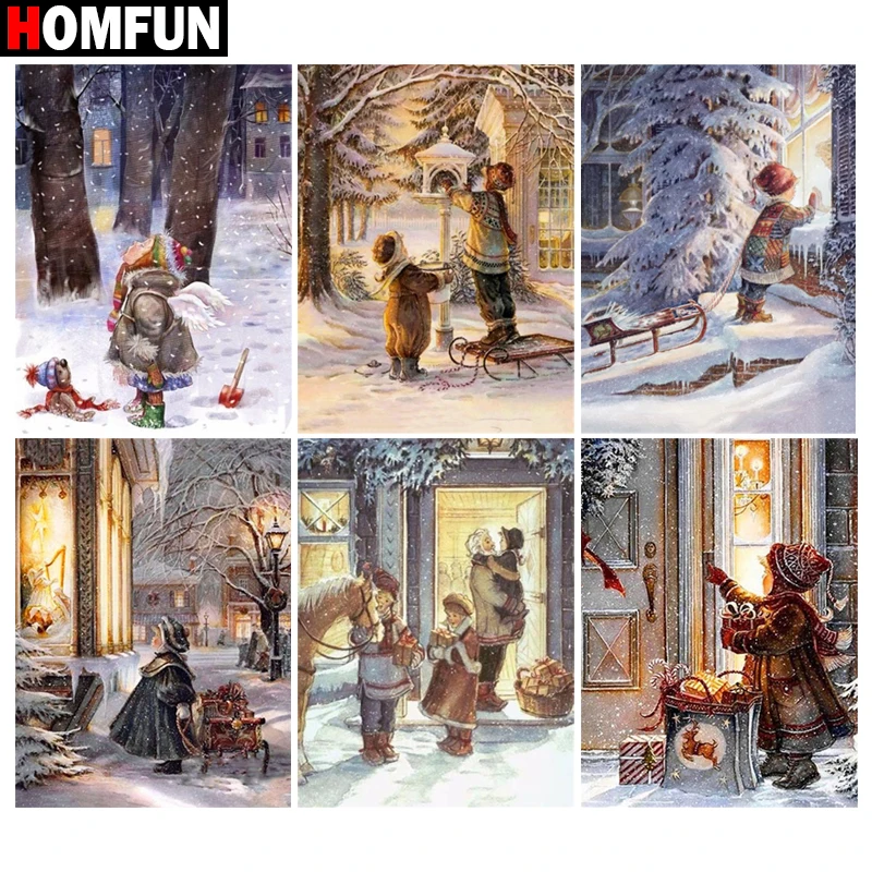 HOMFUN Diamond Painting Full Square/Round Diamond "Girl christmas scenery"Pattern Embroidery Cross Stitch 5D Rhinestone Painting