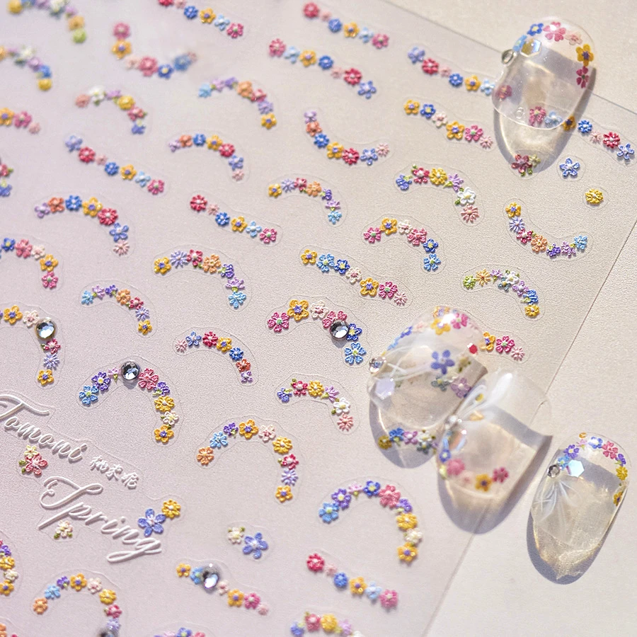 5D Mini Flowers Colorful Wreath Daisy Delicate Shiny Rhinestone Spring Self Adhesive NailArt Decorations Stickers Manicure Decal