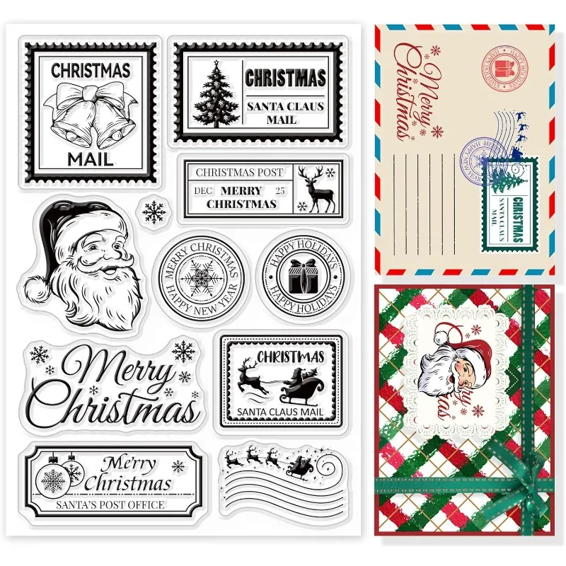 1Sheet Christmas Tree Stamp Clear Stamp Santa Claus Bells Snowflakes Silicone Clear Stamp Dates Rubber Stamp for Scrapbook