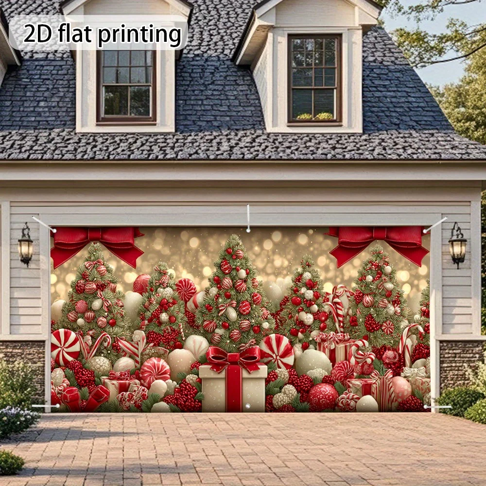 1 piece, Christmas garage door banner - Candy Land Noel holiday decoration with candy sticks