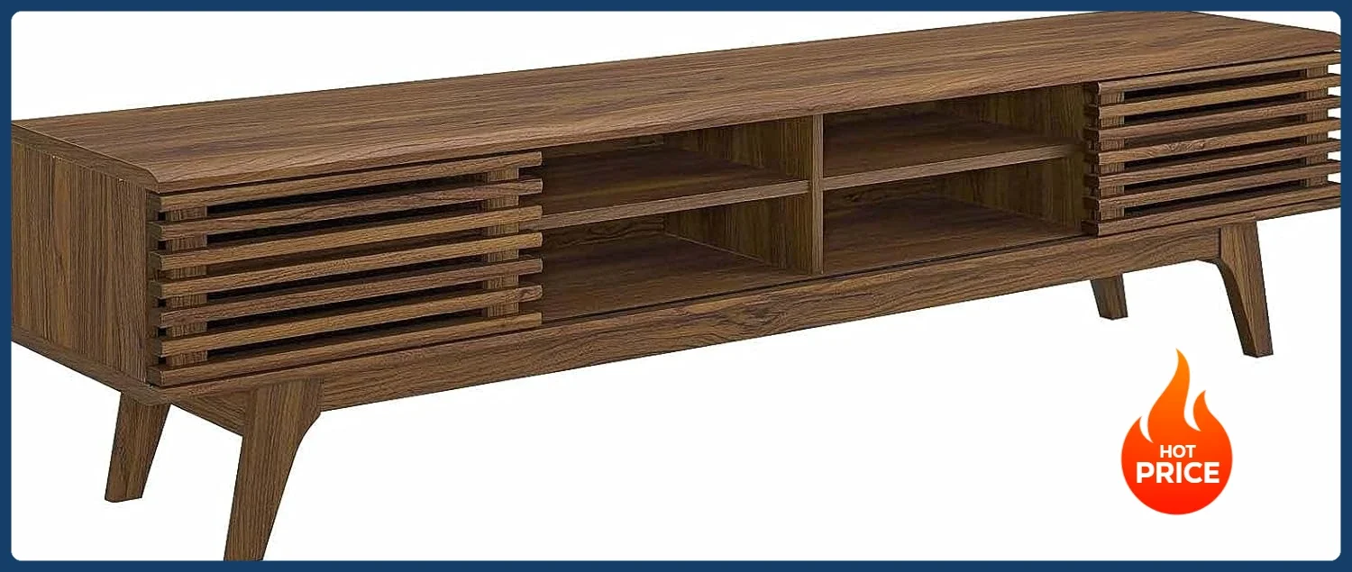 [New Arrival!]Render 70" Mid-Century Modern Low Profile Media Console TV Stand, 70 Inch, Walnut Walnut