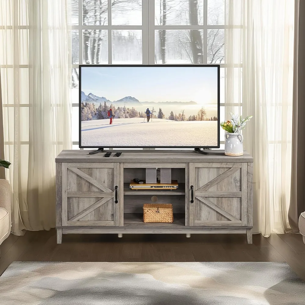 TV Stand for 65 Inch TV, Farmhouse Console Table for Living Room, Tall Entertainment Center with Double Barn Doors