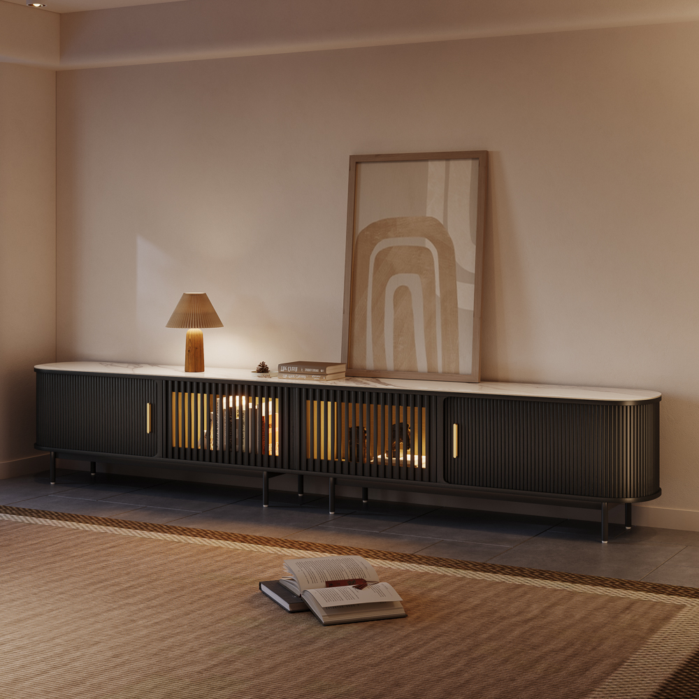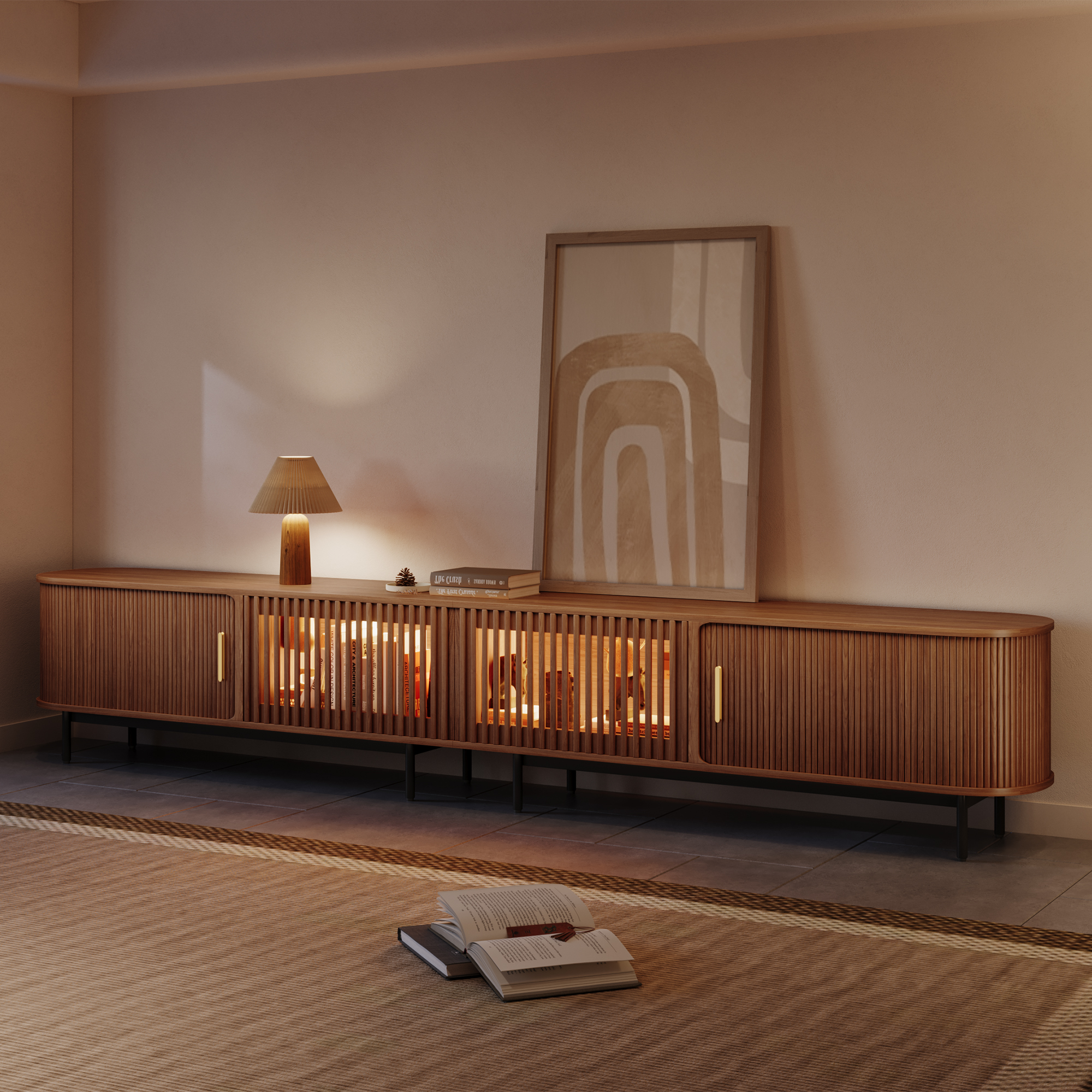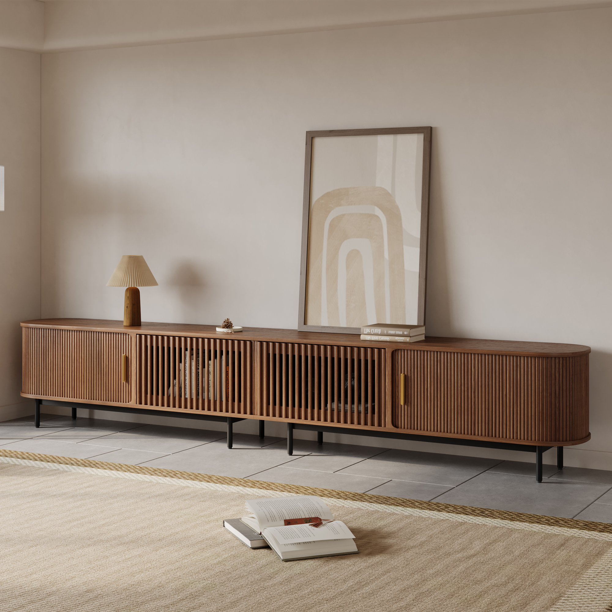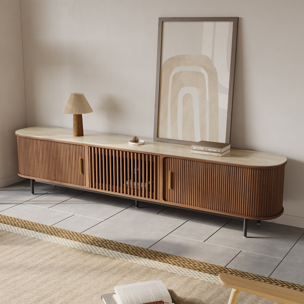 [Eco-friendly Materials]Made of Plywood and Ash Slatted fence and Ash Tambour door , it is environmentally friendly and durable.[Elaborate Design]Featuring aTambour door design, it is elegant and prevents dust from entering the TV cabinet.[Vintage...