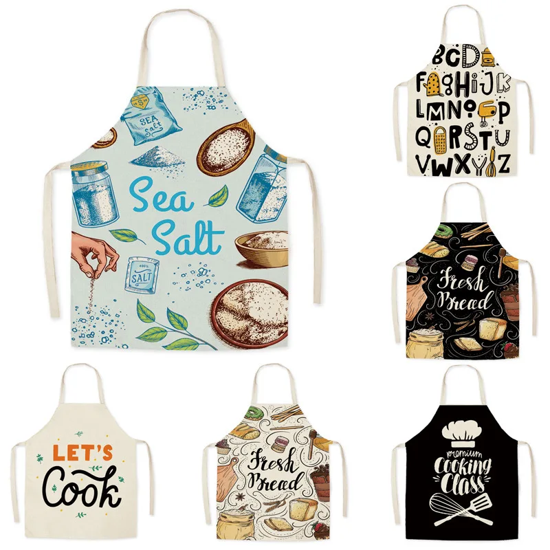 1 Pcs Cooking Kitchen Aprons for Women Cotton Linen Letter Bibs Household Cleaning Pinafore Home Cooking Apron 55x68cm