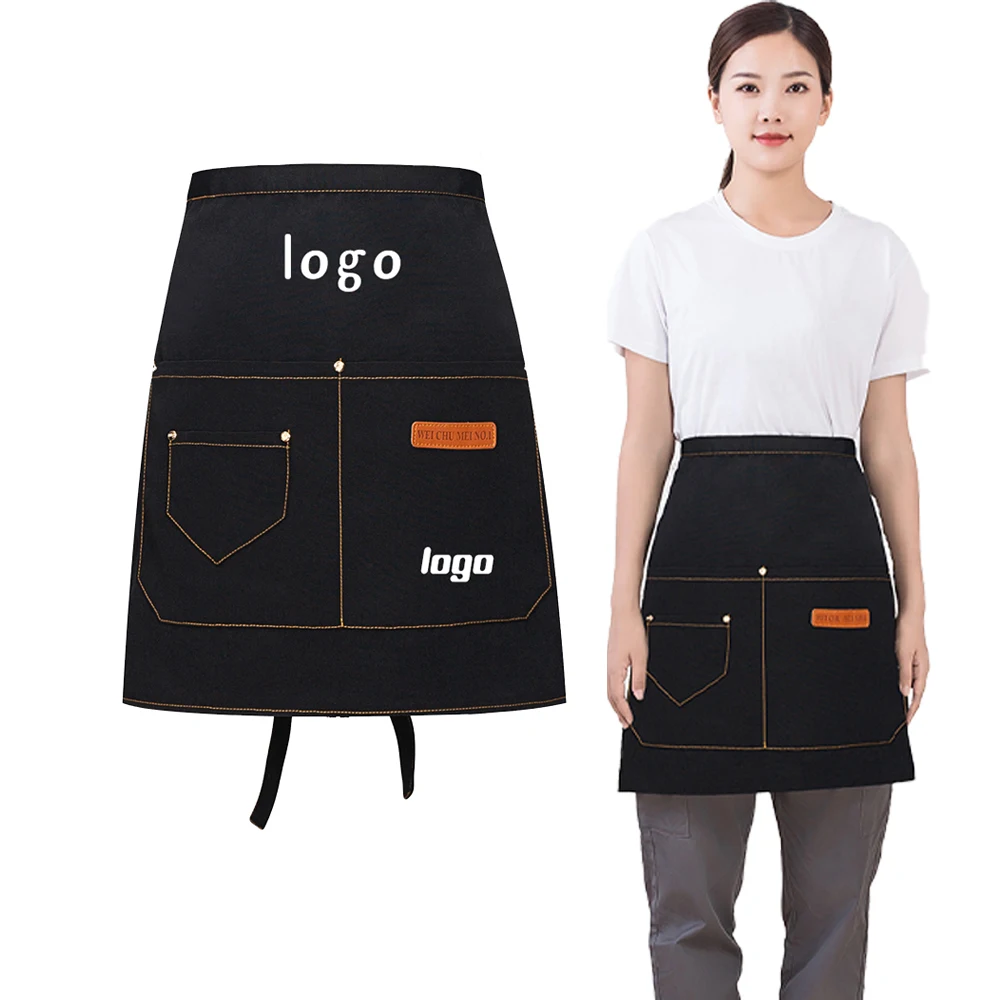 Canvas Short Apron for Women Waiter Seller Small Half Aprons Custom Restaurant Bar Cafe Food Shop Attendant Work Waist Mandiles