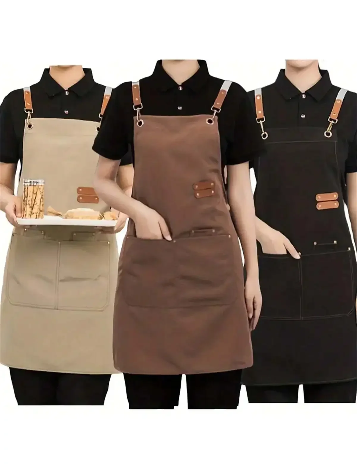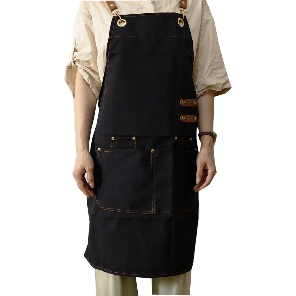 Waterproof Chef Apron, Cross Back Apron for Men Women with Adjustable Straps and Large Pockets, Canvas