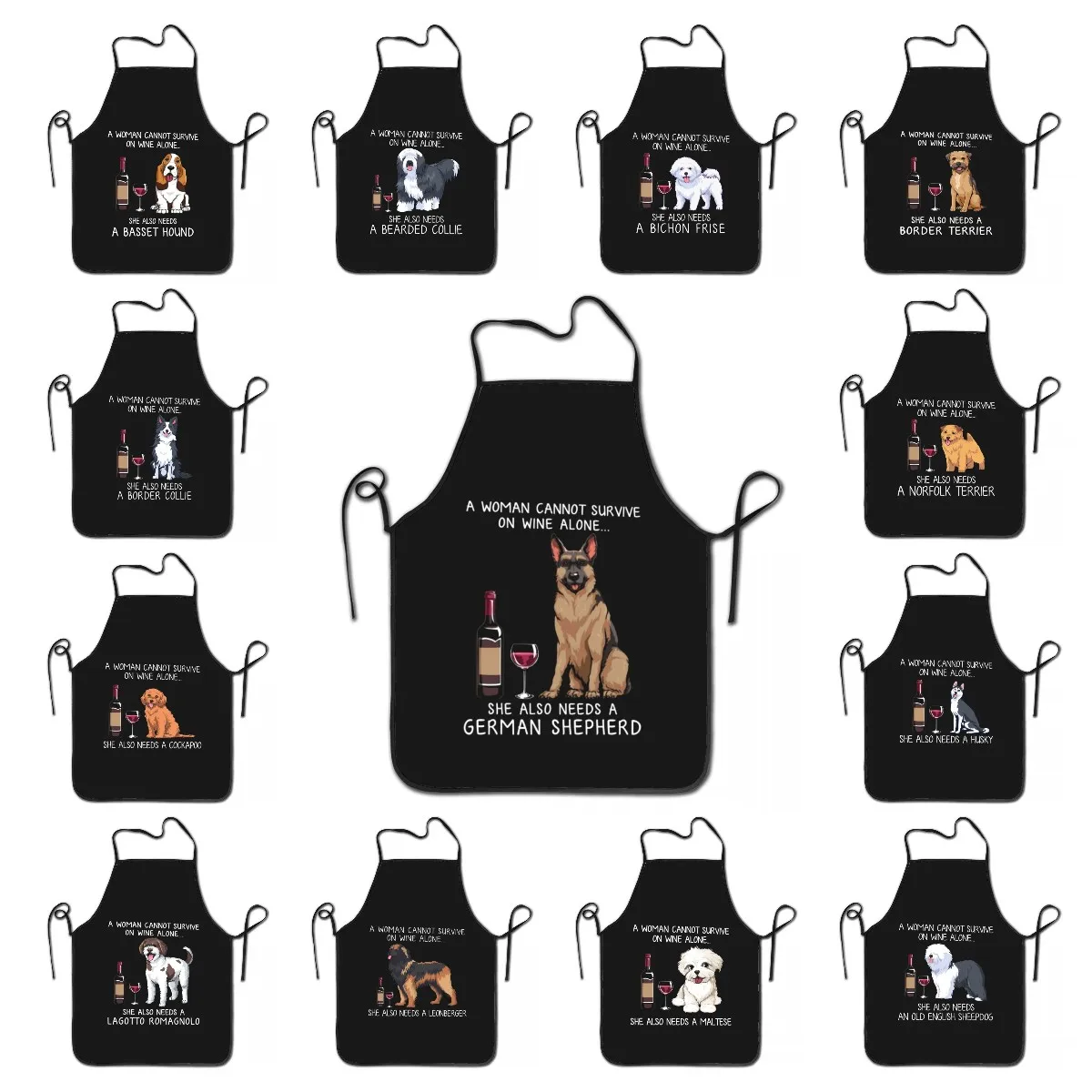 Funny Pet Dog And Wine Apron Men Women Unisex Kitchen Chef Husky Poodle Bulldog Tablier Cuisine for Cooking Baking Gardening
