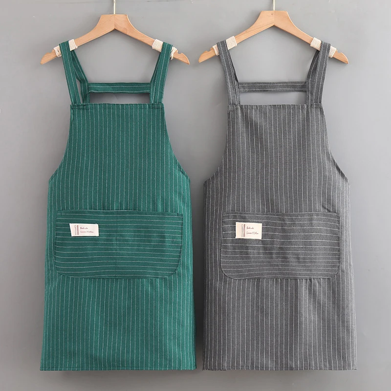 Linen Striped Apron Household Sleeveless Hanging Neck Adjustable Elasticity Kitchen Cooking Gardening Japanese Style Apron New