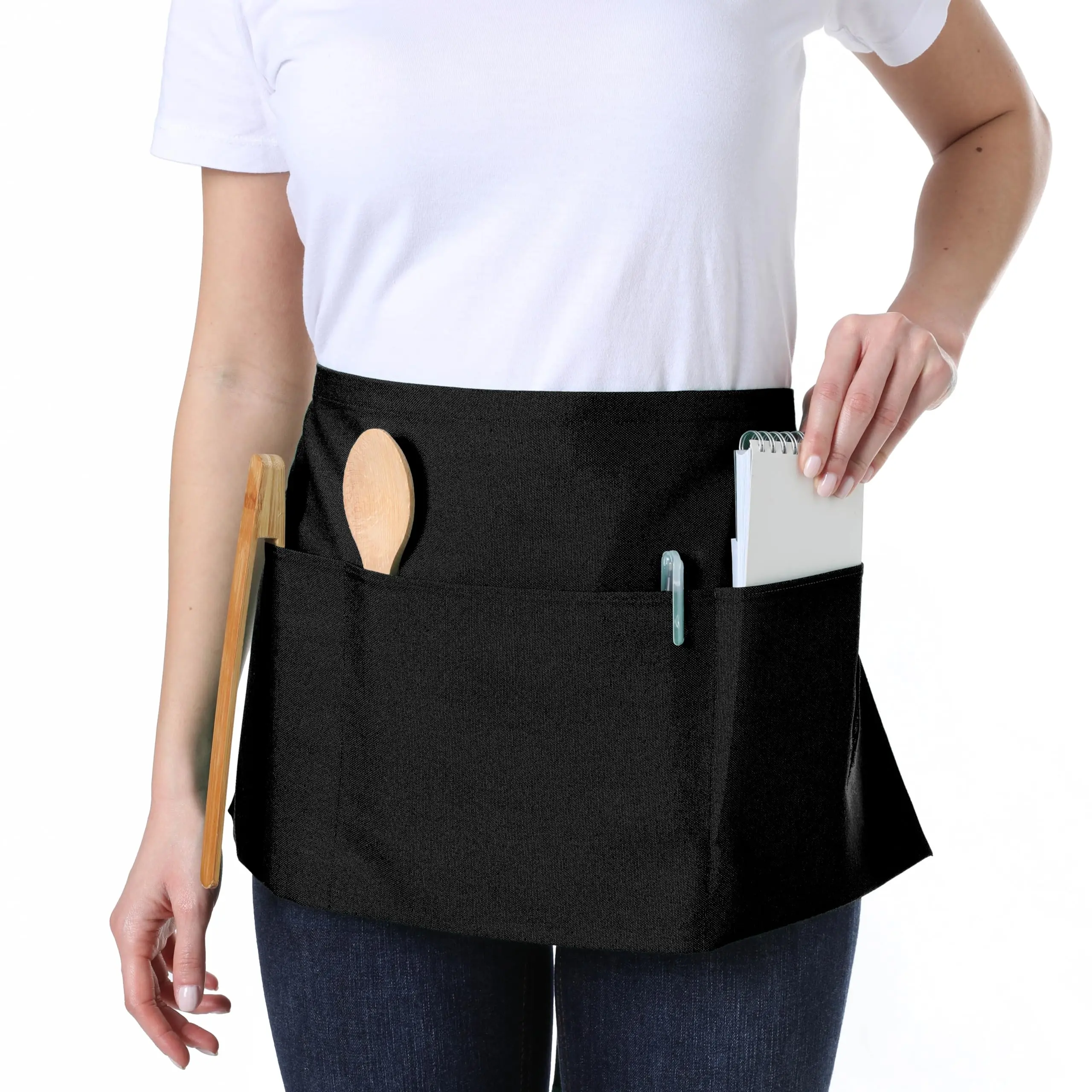Waist Apron with 3 Pockets Waterdrop Resistant 1 Pack Cotton Waitress Apron