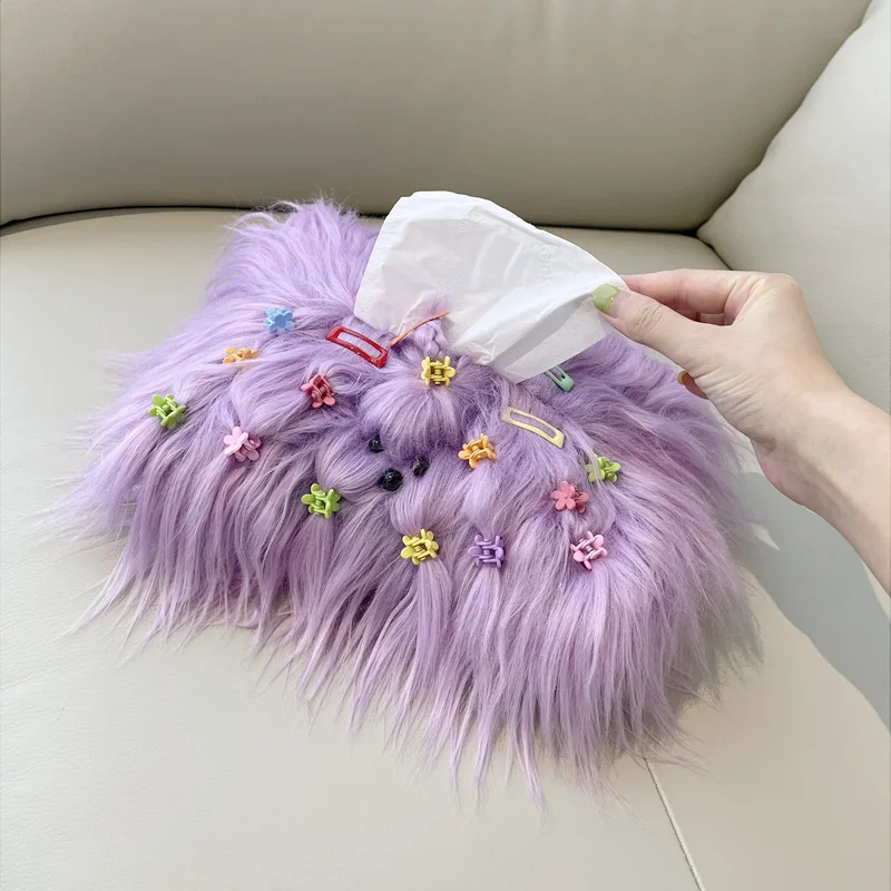 Cute Long-haired Dog Fluffy Tissue Box Heart Knitting Thread Napkin Holder Tissue Bag Bedroom Kitchen Desktop Storage Napkins  Read more