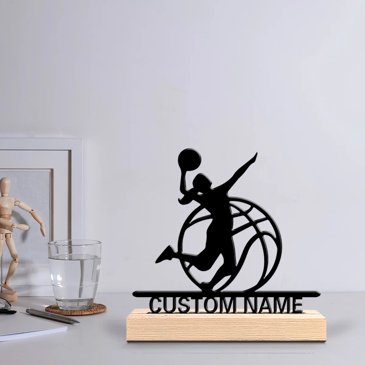 1pc New Design personalized custom Basketball Metal statues Metal Art with Wooden Base perfect for bedrooms, birthdays, and Chri