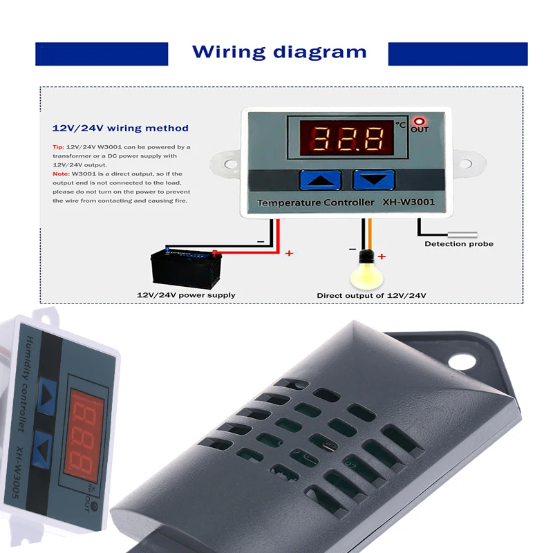 DC XH-W3005 Digital Humidity Controller 12V 24V 220V Humidistat Hygrometer Humidity Control Switch Regulator + Humidity Sensor