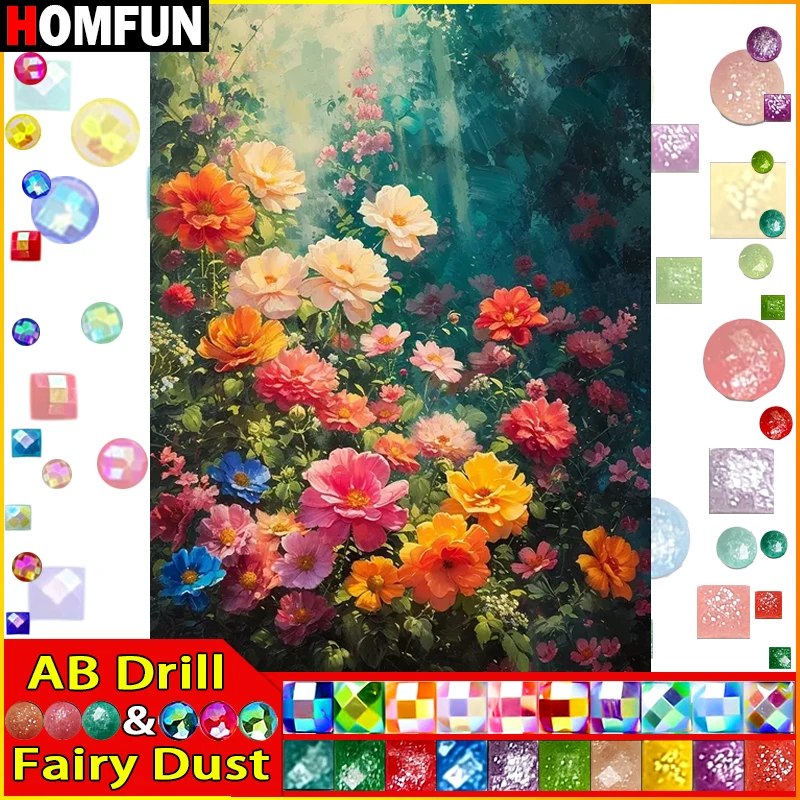 HOMFUN Fairy Dust AB 5D DIY Diamond Painting "Scenery Flower" Full Drill Resin Diamond Embroidery Cross Stitch Home Decor