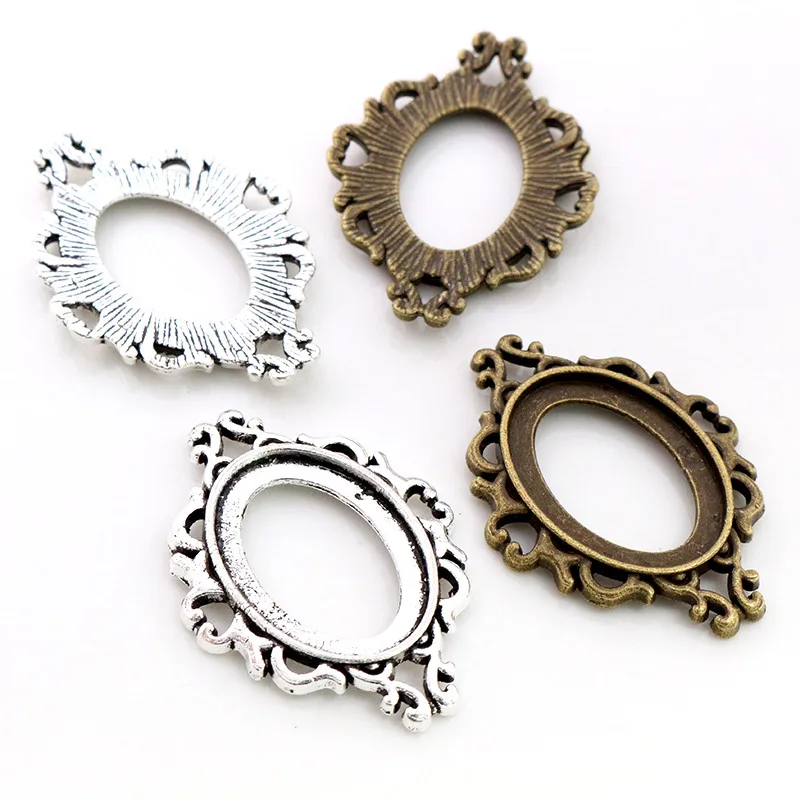 10pcs 18x25mm Inner Size Antique Silver Plated Bronze Flowers Style Cameo Cabochon Base Setting Charms Pendant necklace findings