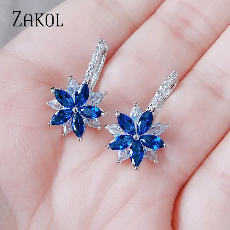 ZAKOL Cute Romantic Lovely Clear Stone Flower Convenient Simple Earrings Copper Cubic Zirconia For Women Party Jewelry EP2120