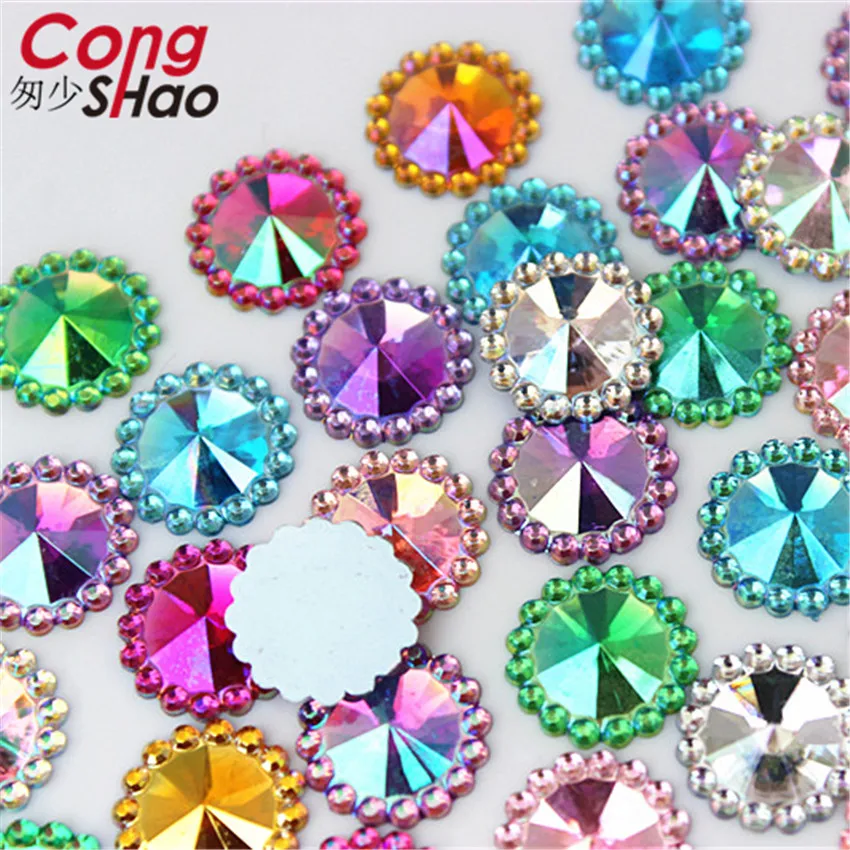 Cong Shao 200pcs 12mm AB Color Round Sun Flower Acrylic Crystal Stone Flatback Rhinestone For DIY Craft Clothes Decoration ZZ761