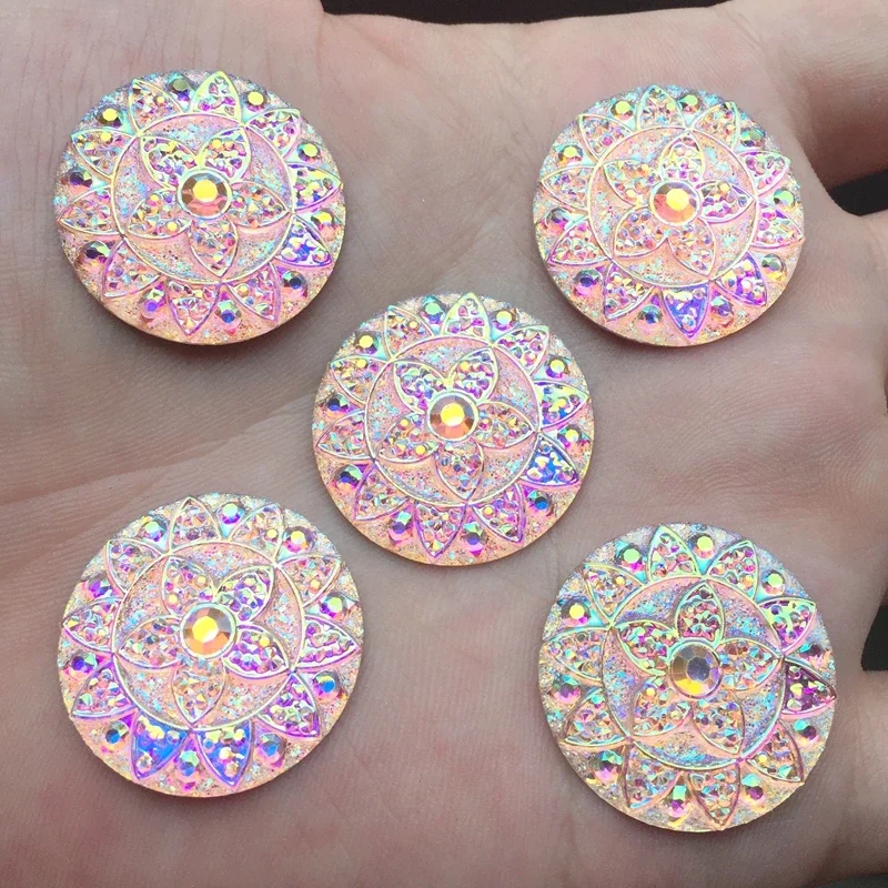 12PCS 25mm AB Resin Round Flowers Rhinestone Flatback stones crystals For Clothing Craft -E344