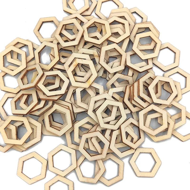 100PCS Wood Slices Ornaments Hexagon Square Flower Shape Wood Slabs Craft DIY Decoration