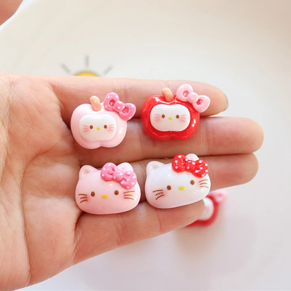 10pcs Resin 3D Cartoon Animal Bow Cat, Apple Cat Resin Flatback Stone Scrapbook Wedding DIY Decor Crafts Jewelry Accessories