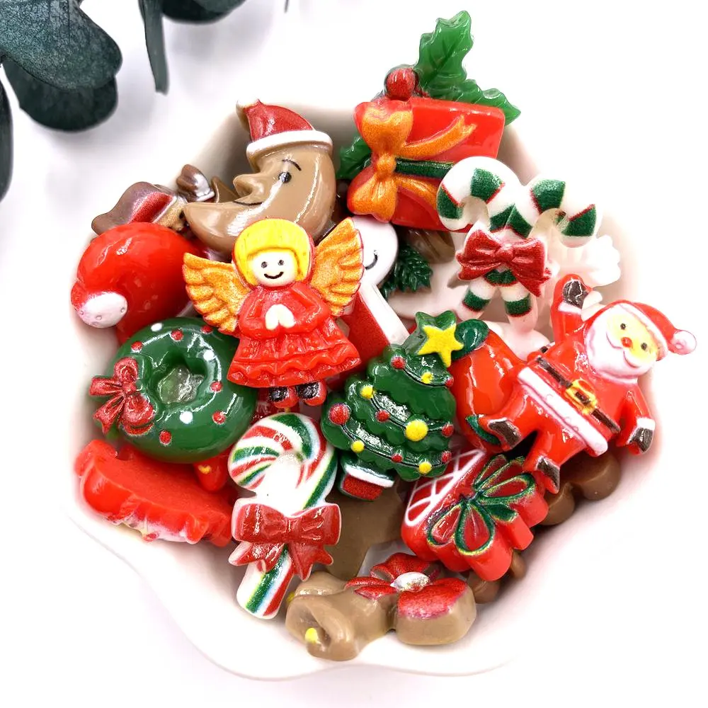 Resin Colorful Angel Santa Bear Tree Box Flatback Cartoon Figurines 20pcs Scrapbook DIY Art Material Christmas Ornament OH30