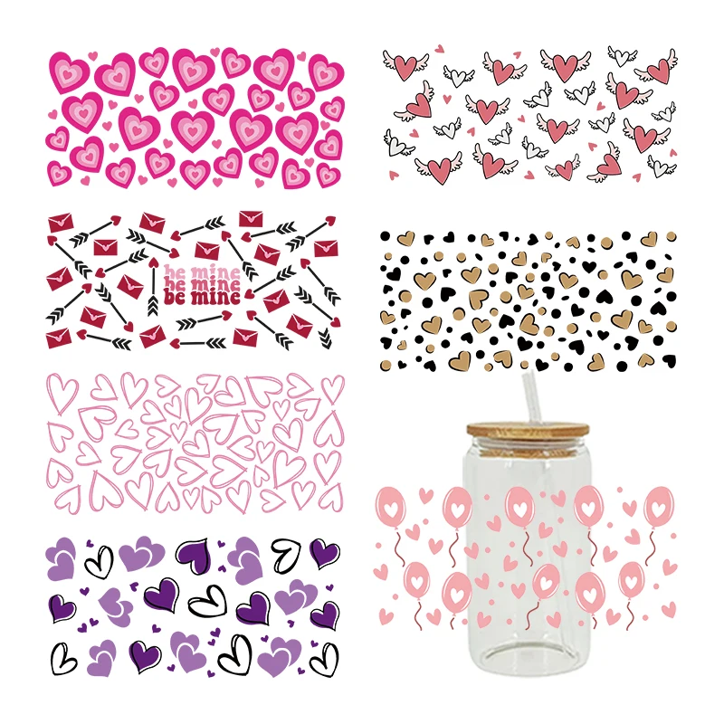 UV DTF Transfers Stickers, Cup Wraps, Love Printed for DIY Glass, Ceramic Metal Leather, Valentine's Day, 3D, 16oz D8332