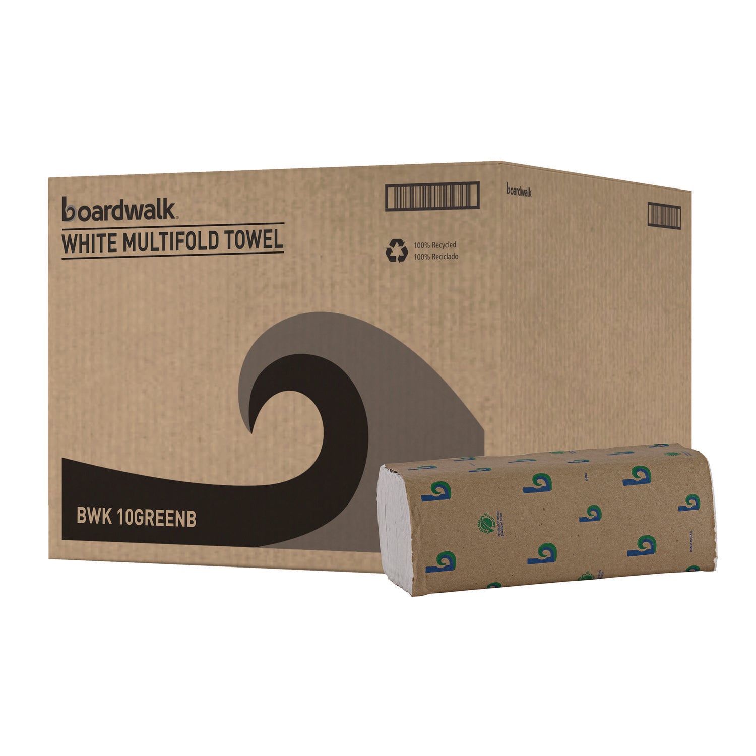 Boardwalk 10GREEN Boardwalk Green Multifold Towels, 1-Ply, 9.3 x 9.5, Natural White, 250/Pack, 16 Packs/Carton - Case of 4000 BWK10GREEN