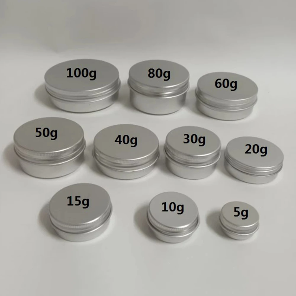 5/10/15/20/30/50/60/80/100/110/150/200g Empty Round Portable Aluminum Box Metal Tin Cans DIY Cream Silver aluminium case